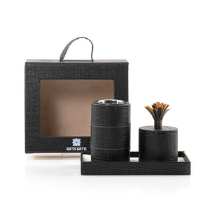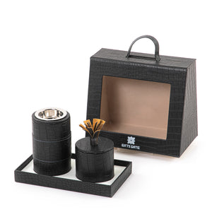صينية جلد مع مبخرة وعلبة بخور وبوكس هدية