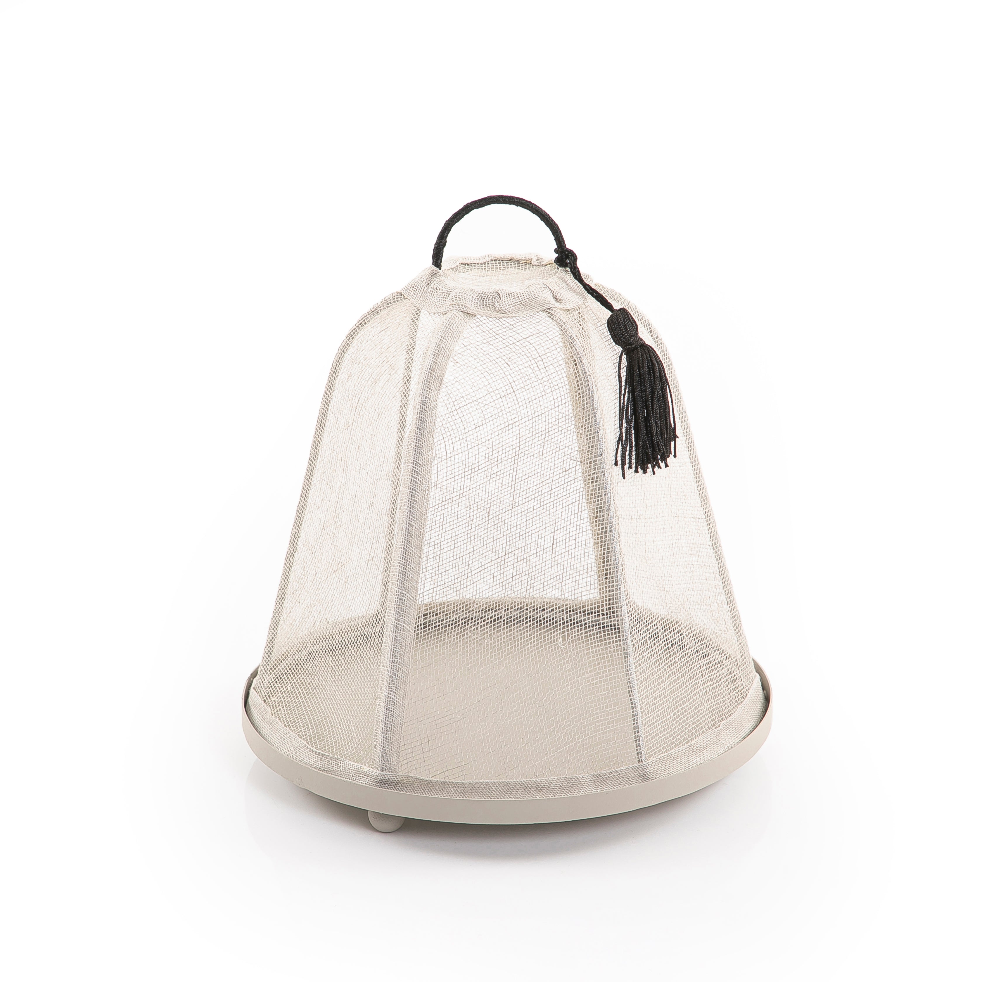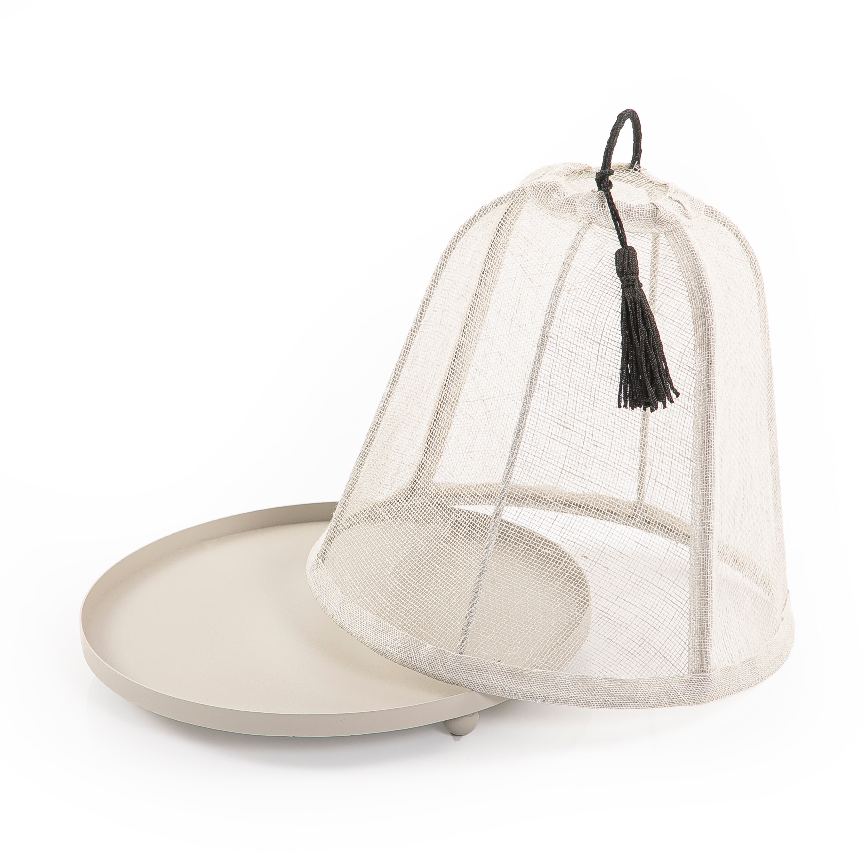 صينية معدنية بغطاء لينن مقوس