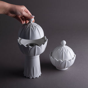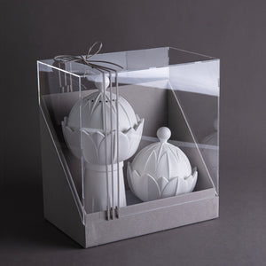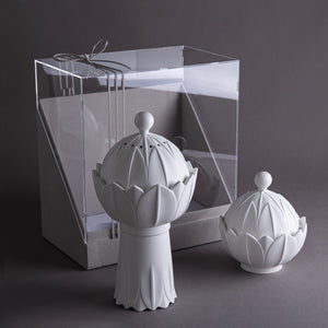 طقم مكون من مبخر و وعاء سيراميك مع بوكس هدايا - أبيض