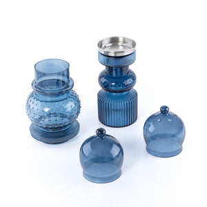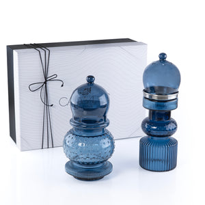طقم مبخر زجاجي 2 قطعة صغير – أزرق