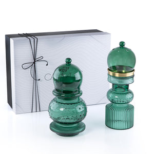 طقم مبخر زجاجي 2 قطعة صغير – أخضر