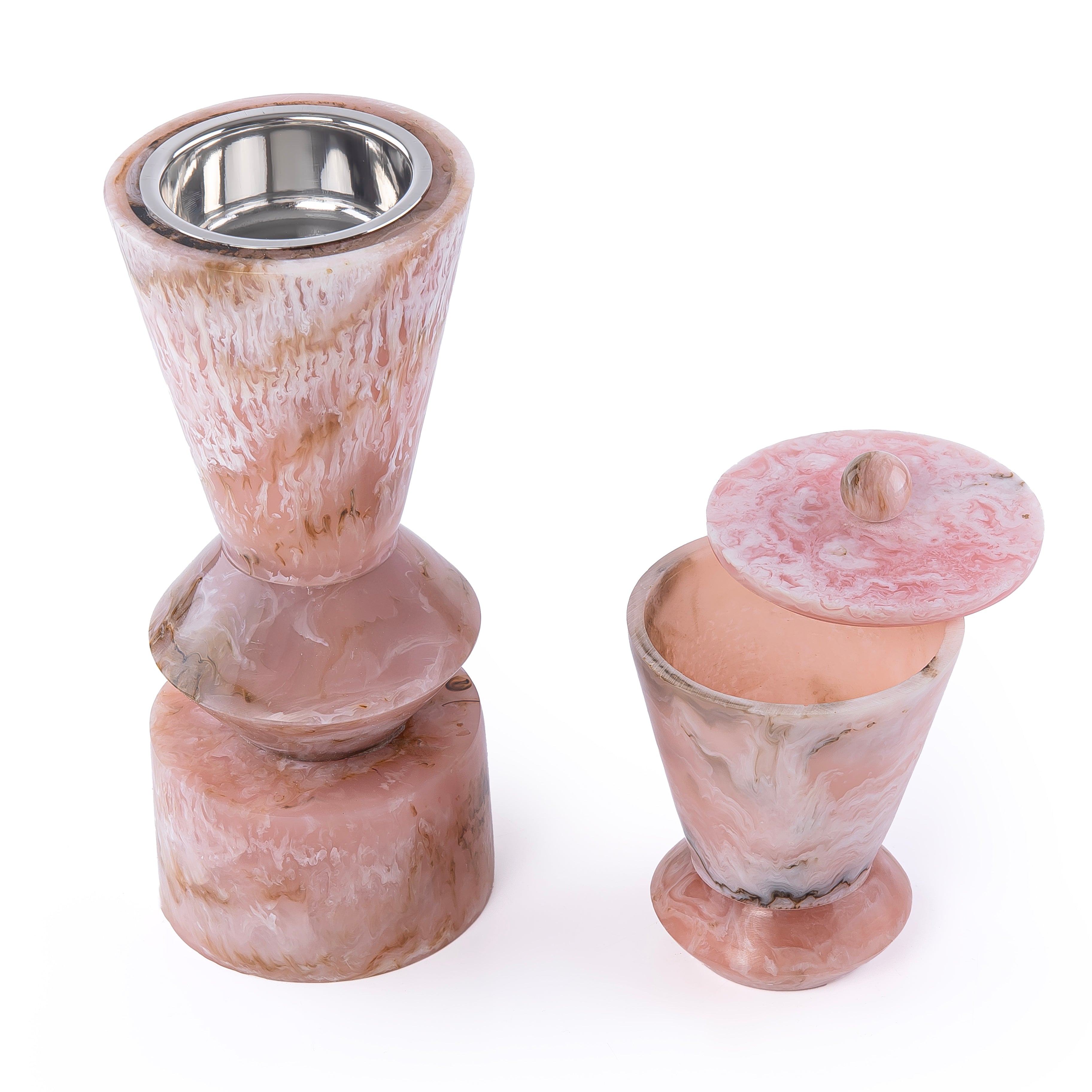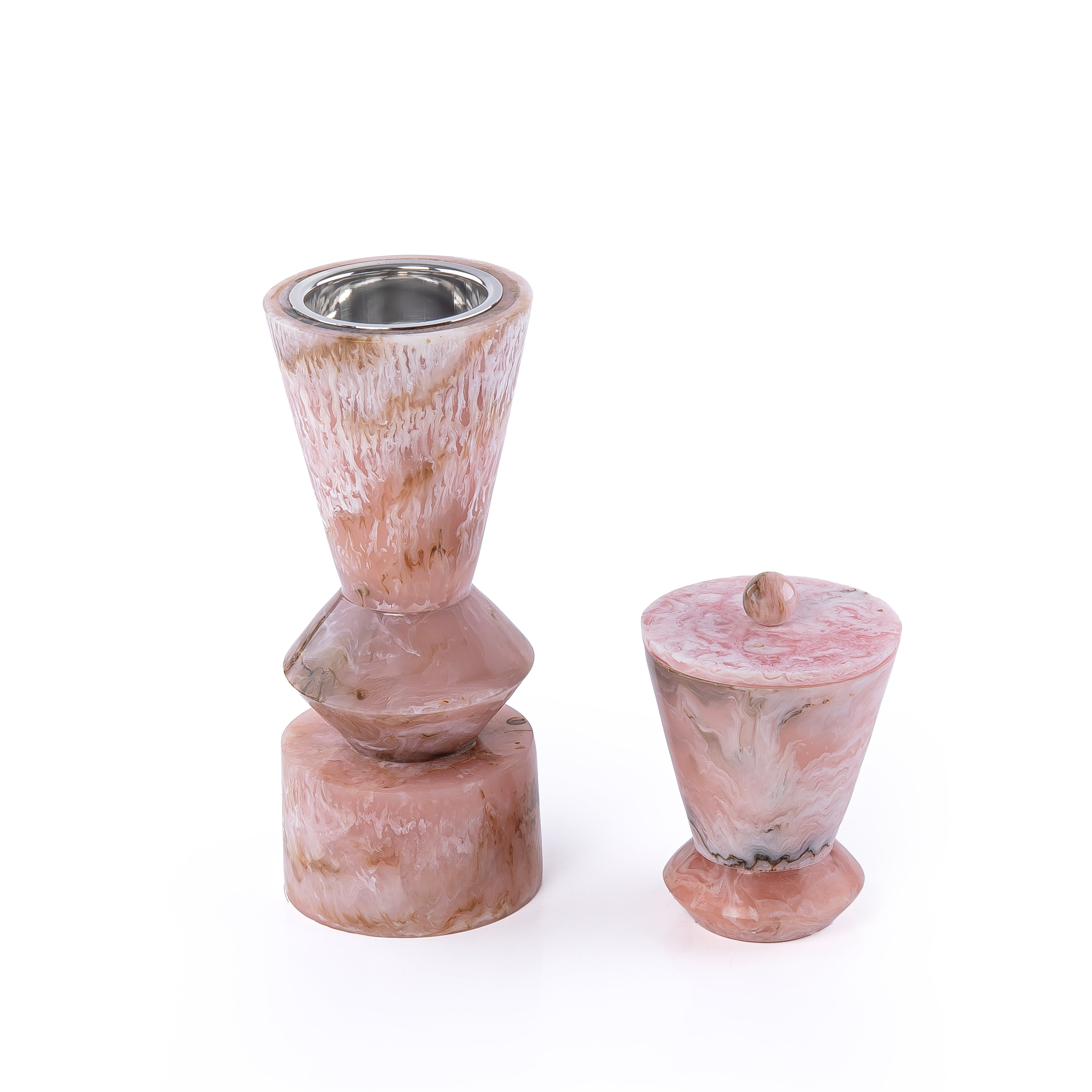 طقم مبخر أنيق من الراتنج مكون من قطعتين - وردي