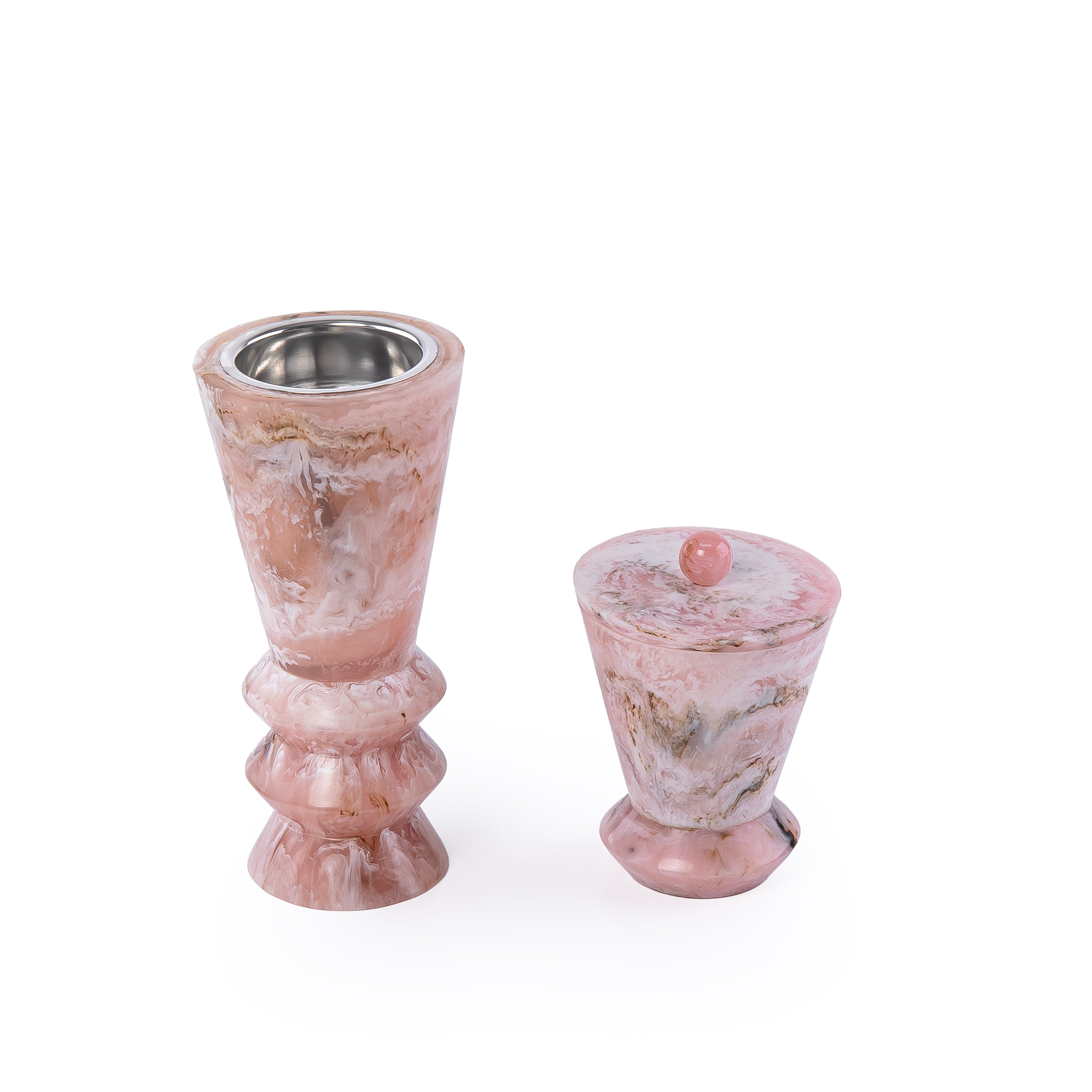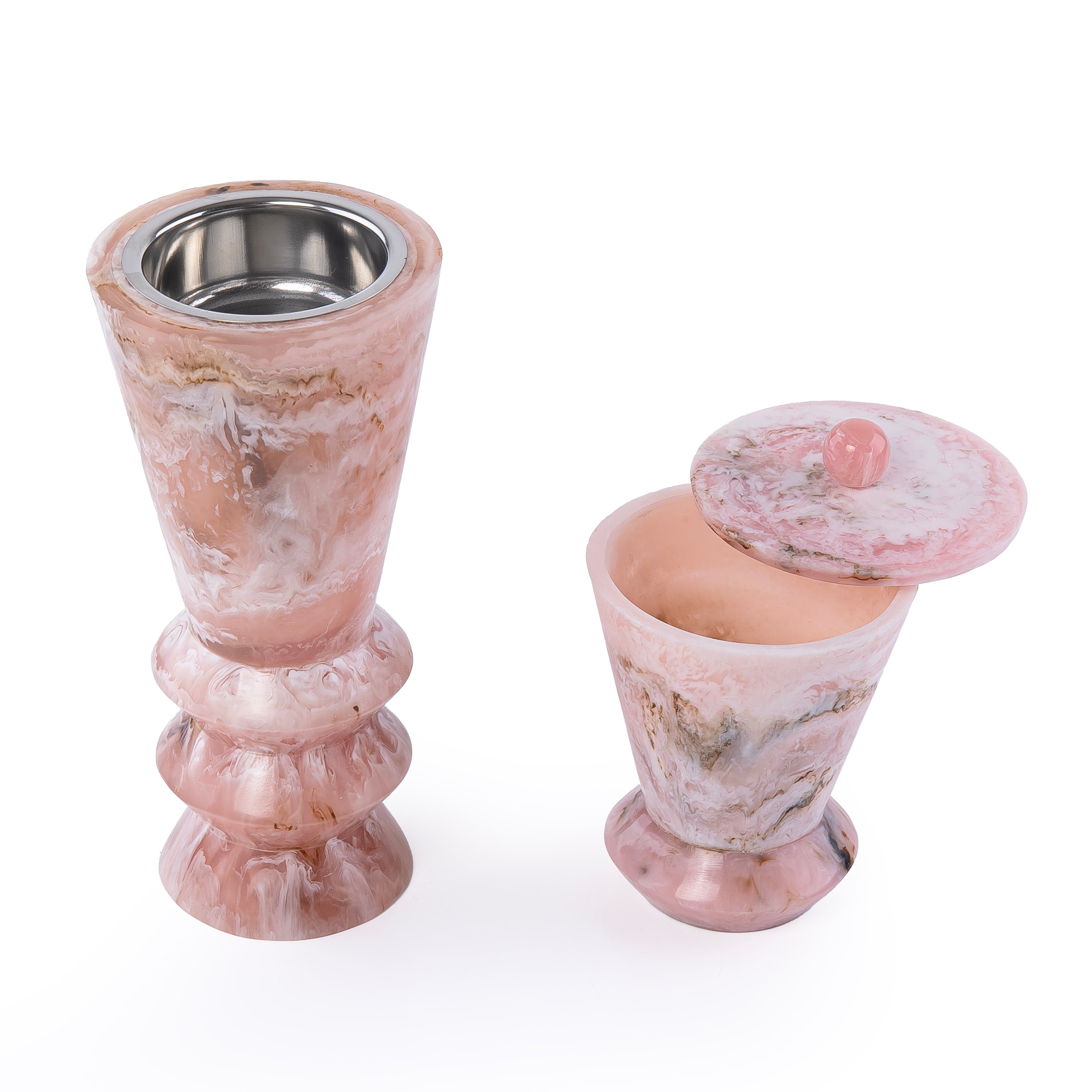 طقم مبخر أنيق من الراتنج مكون من قطعتين - وردي