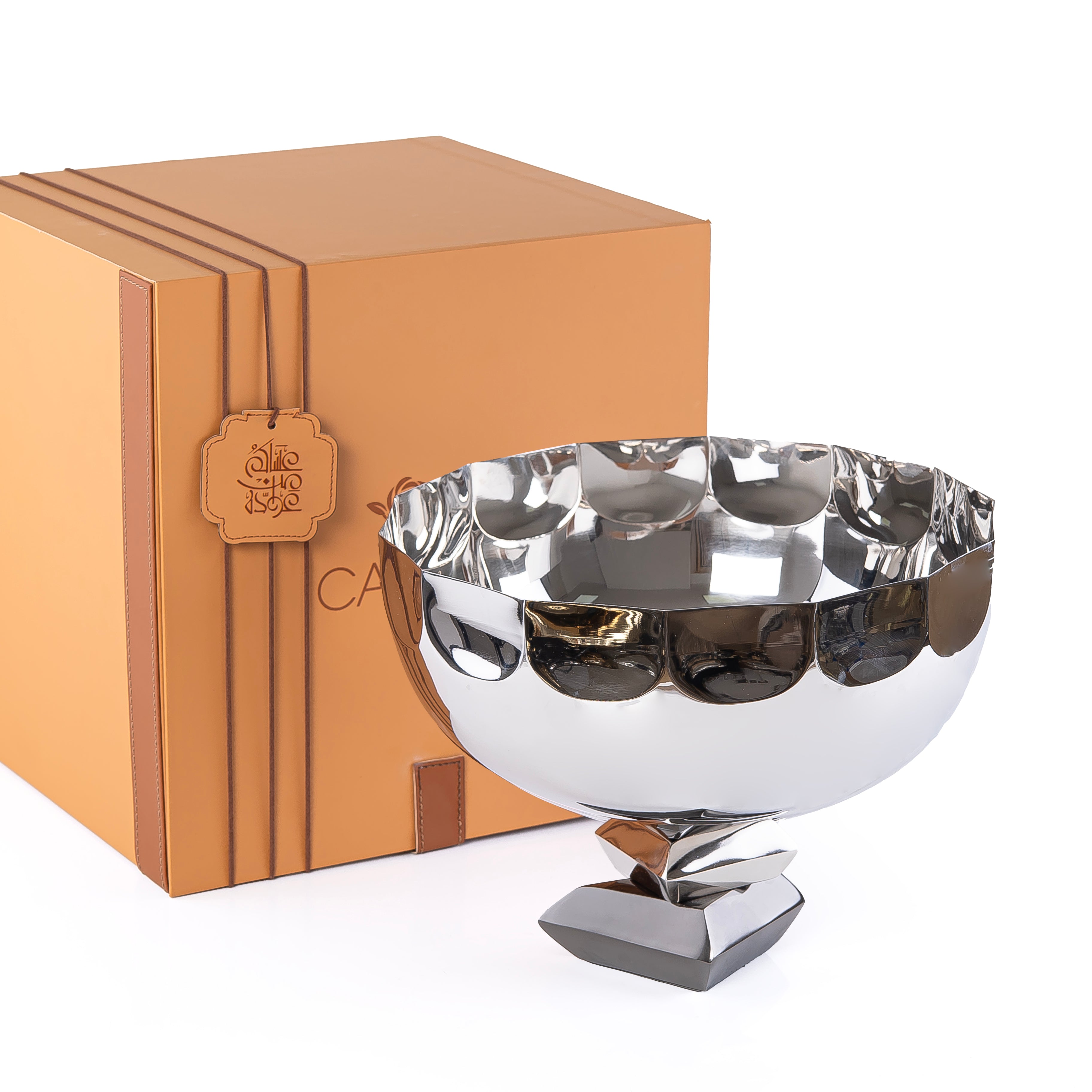 أضف لمسة من الرقي إلى مائدتك مع وعاء التقديم المعدني الدائري الأنيق هذا، المزود بقاعدة مدمجة تمنحه ثباتًا مثاليًا. يتميز بتصميم عصري أنيق وتشطيب فضي جذاب، ليجمع بين التصميم العصري والوظائف العملية. يُعد هذا الوعاء مثاليًا لتقديم المقبلات والسلطات والحلويات في حفلات العشاء والمناسبات الخاصة، حيث يضفي لمسة من الرقي على أي مائدة. يأتي الوعاء في علبة هدايا فاخرة، مما يجعله هدية مثالية لمن يُقدّرون أدوات التقديم عالية الجودة.