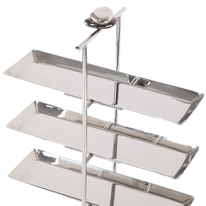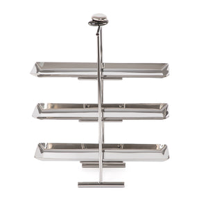 المواد والتصميم: حامل تقديم من المعدن مع 3 طوابق مرتفعتين، يقدم تصميمًا عمليًا لعرض منظم.