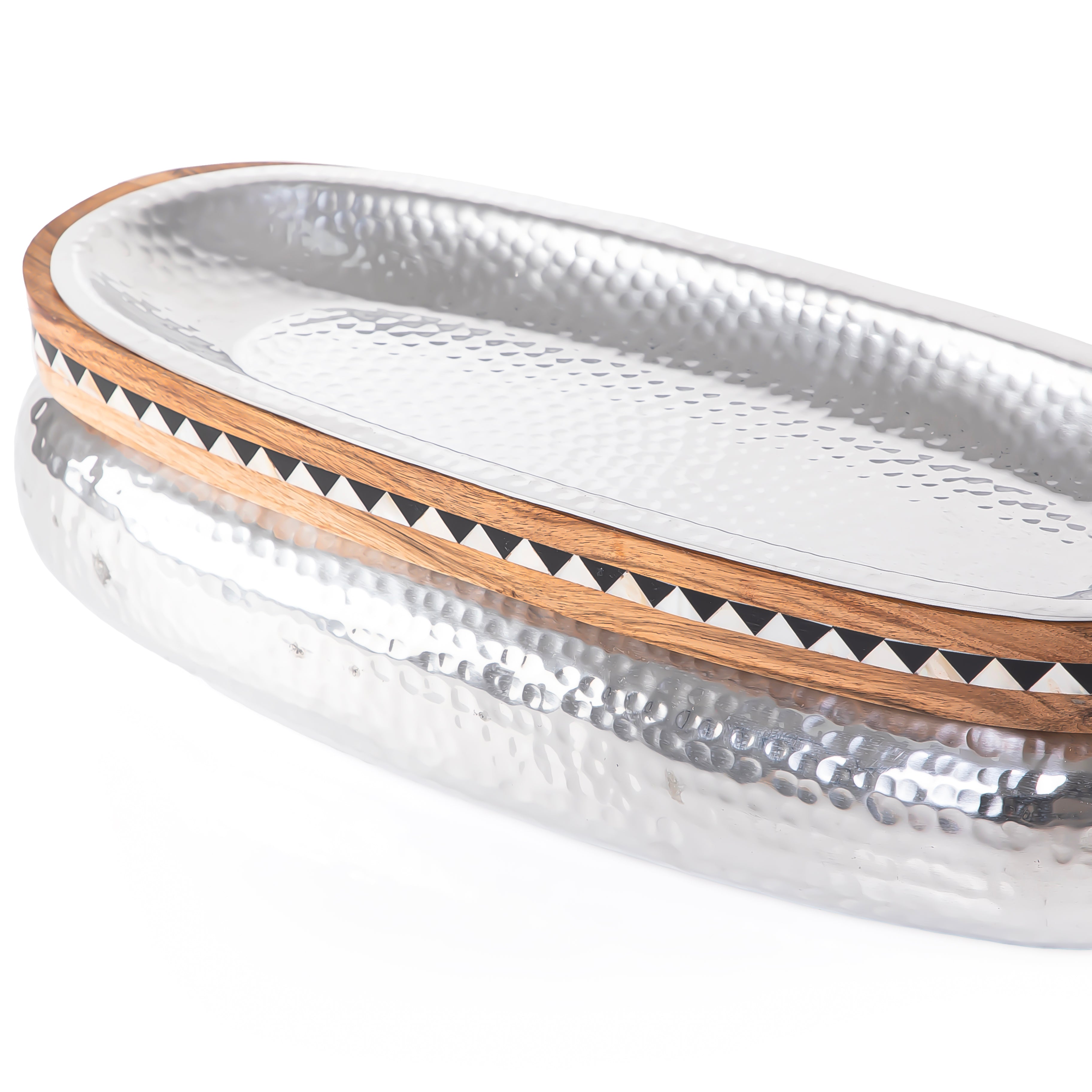 يتميز بتصميم فاخر بلمسة فضية تجمع بين متانة الألمنيوم وجاذبية الريزين، مما يجعله مثاليًا لتقديم المقبلات، الحلويات، أو الأطباق الرئيسية. بفضل حجمه الواسع (51×18×8 سم)، يوفر مساحة كافية لتقديم الطعام بطريقة أنيقة، كما أن تصميمه الخفيف والمتين يضمن استخدامًا طويل الأمد، مما يجعله مناسبًا للمنازل والمطاعم والفعاليات.