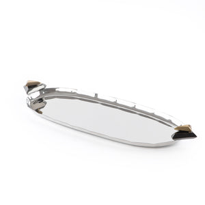 صينية تقديم معدنية بيضاوية باللون الفضي والأسود - صغير