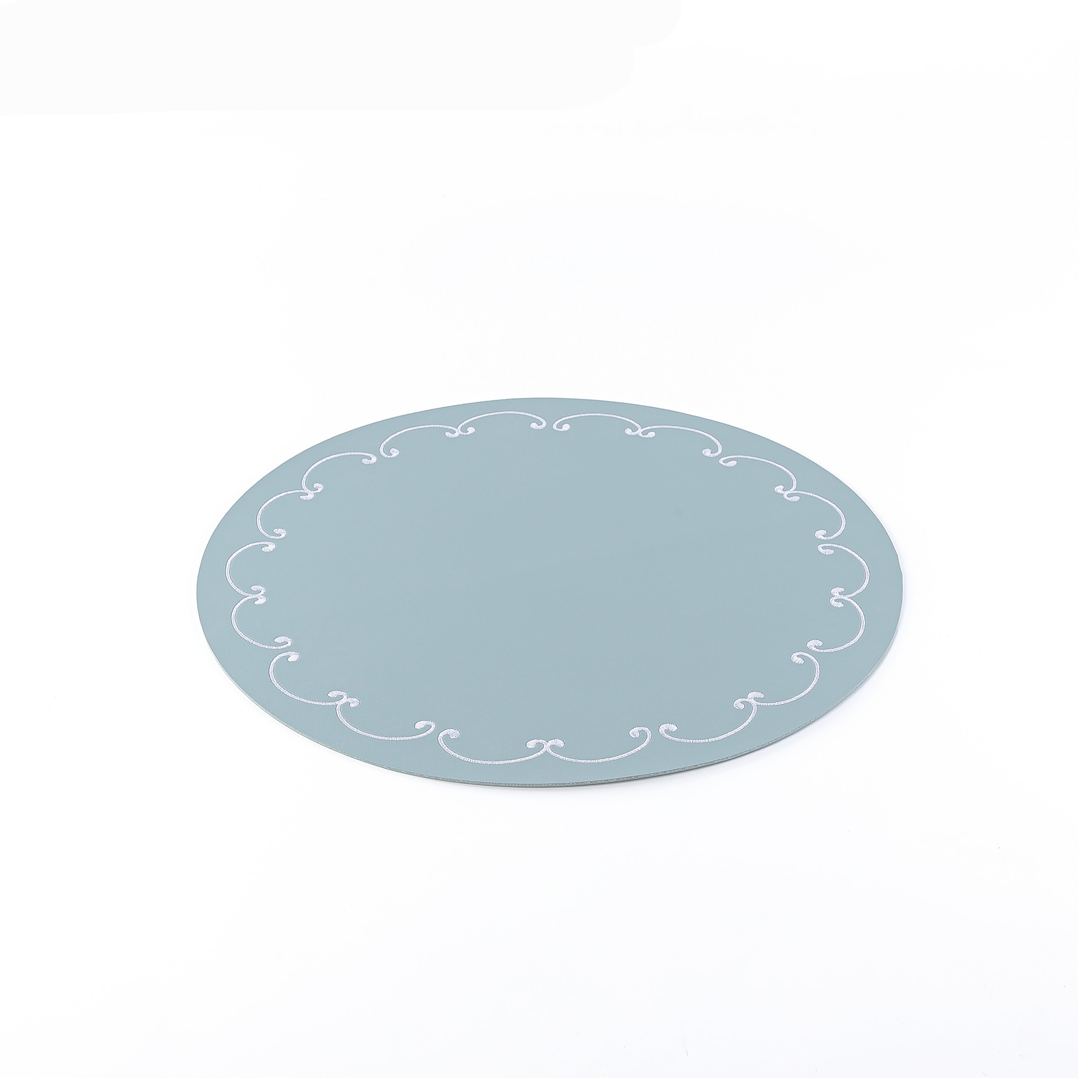 مفرش طاولة دائري من الجلد الصناعي- أزرق