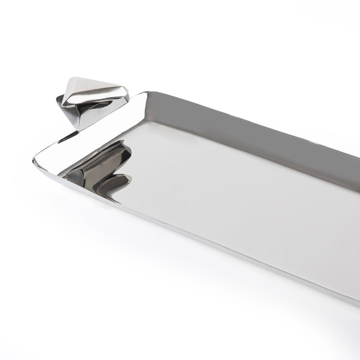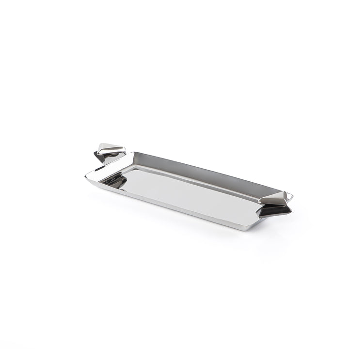 صينية تقديم معدنية مستطيلة باللون الفضي والأسود | 32×14 سم