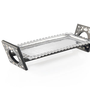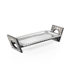 صينية تقديم مستطيلة مصنوعة من الألمنيوم بقاعدة مصنوعة من الخشب والصدف - وسط