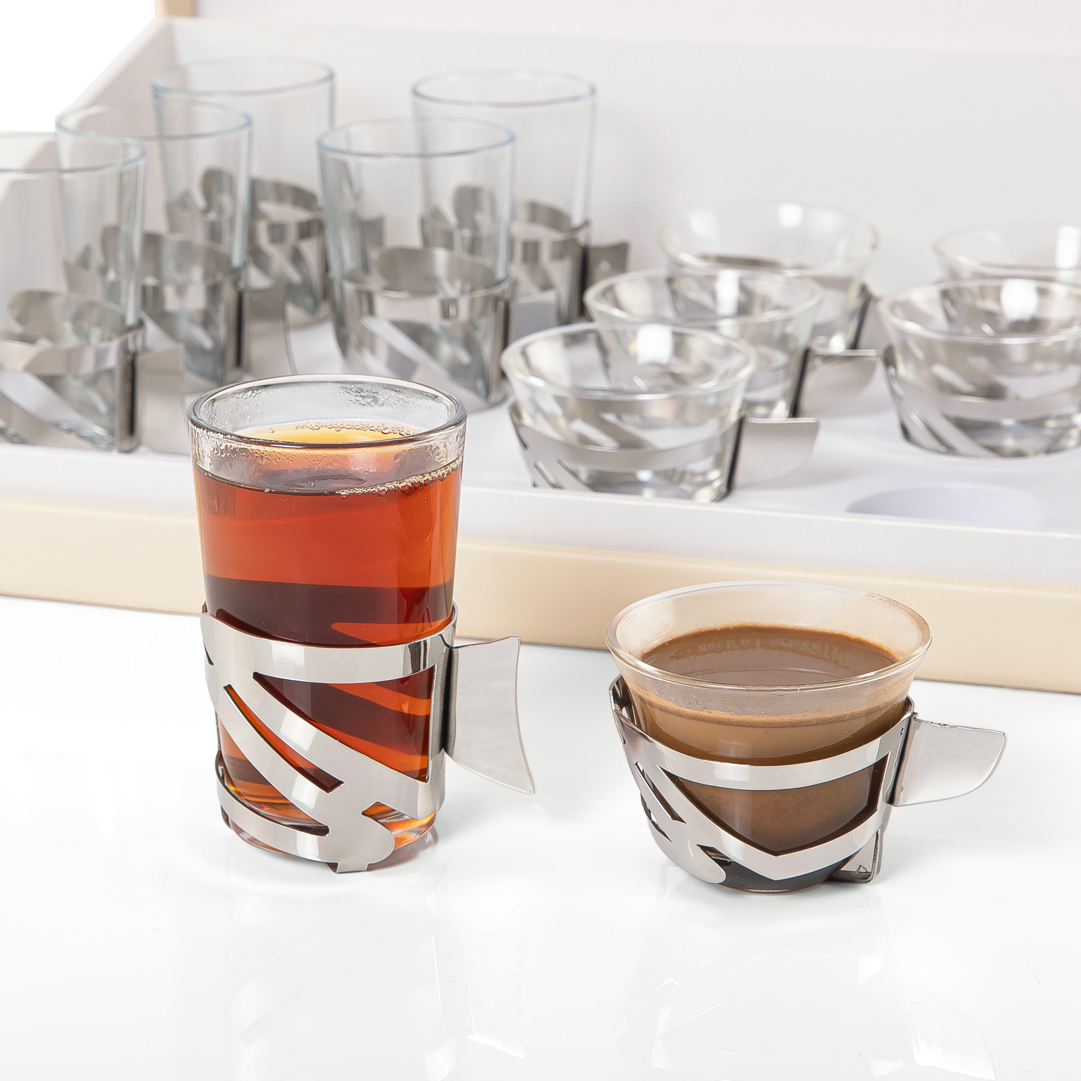 طقم فناجين الشاي والقهوة 12 قطعة مع بوكس هدايا - فضي