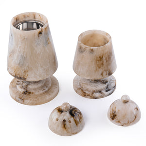 طقم مبخر أنيق من الراتنج مكون من قطعتين مع غطاء - عنبر