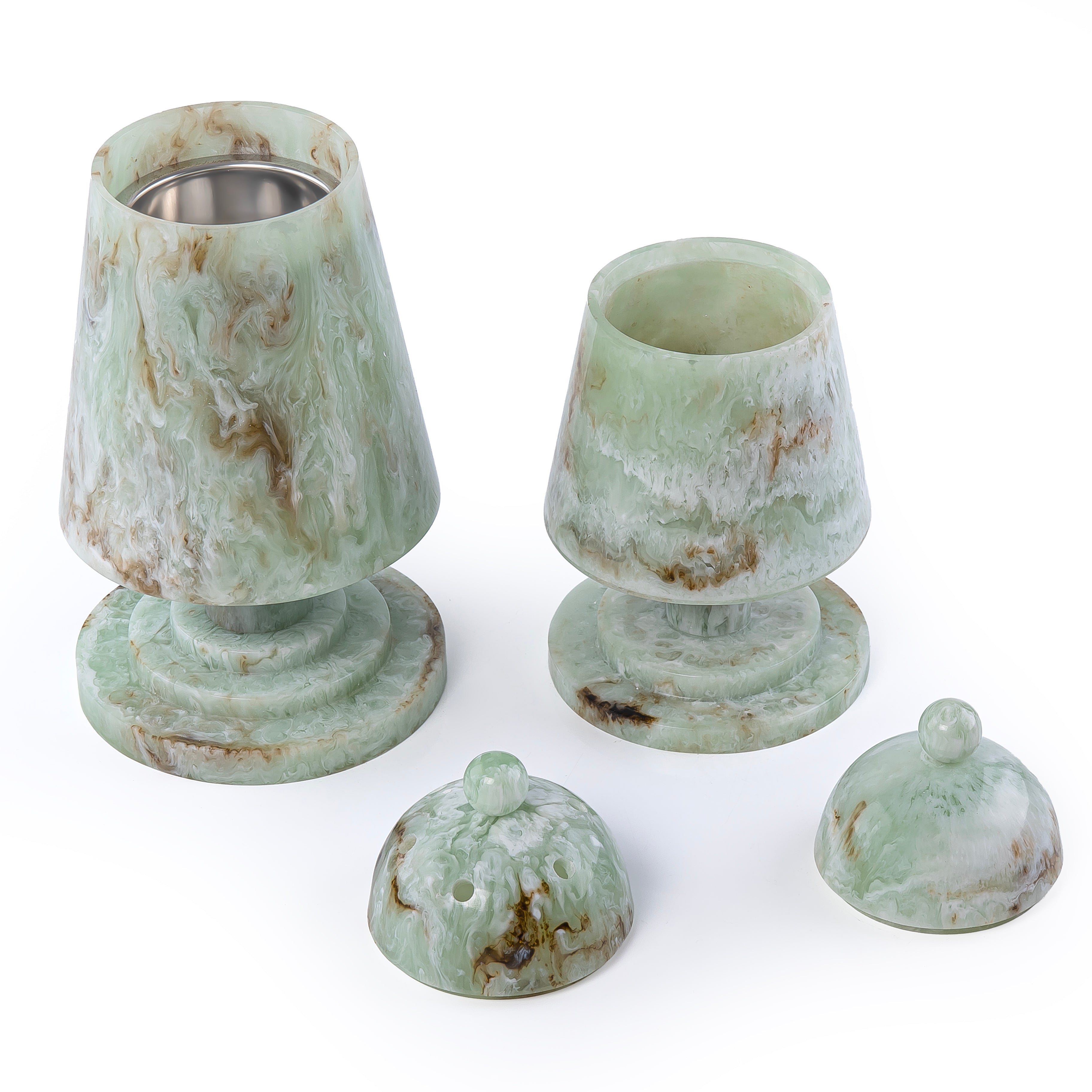 طقم مبخر أنيق من الراتنج مكون من قطعتين مع غطاء - أخضر