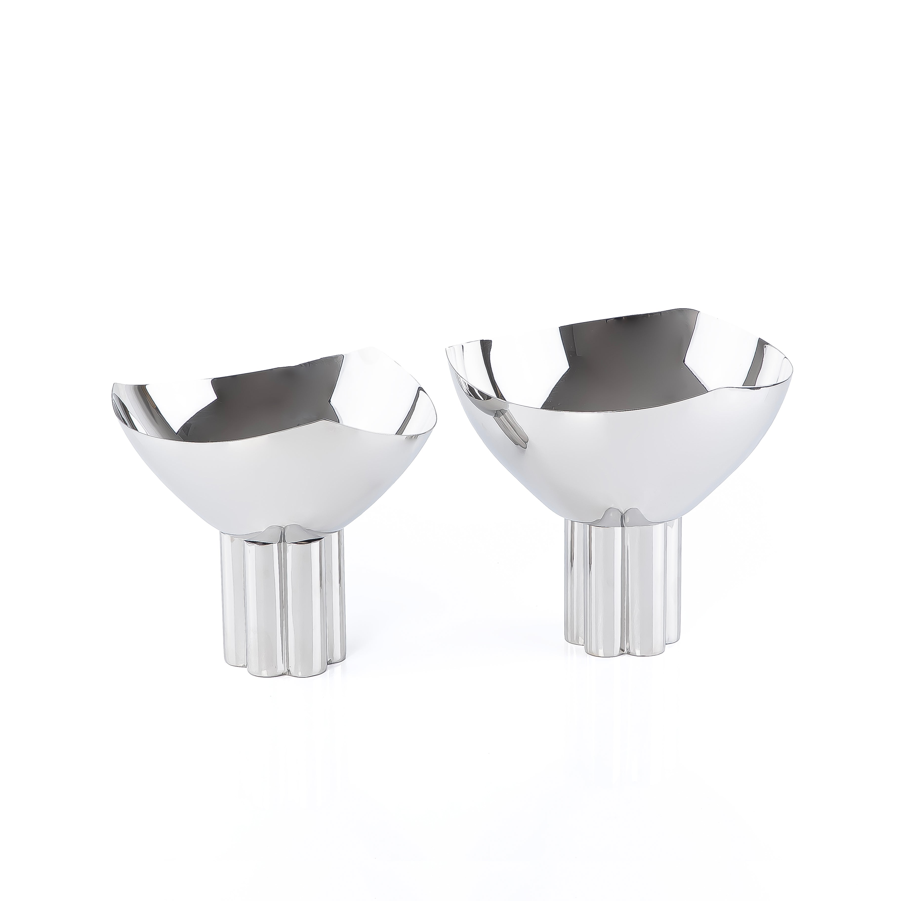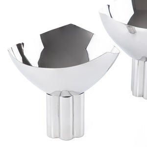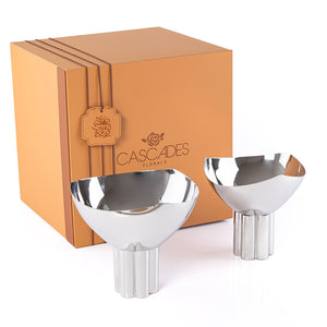 طقم 2 وعاء معدن للتقديم بقاعده مع بوكس للهديا - فضي