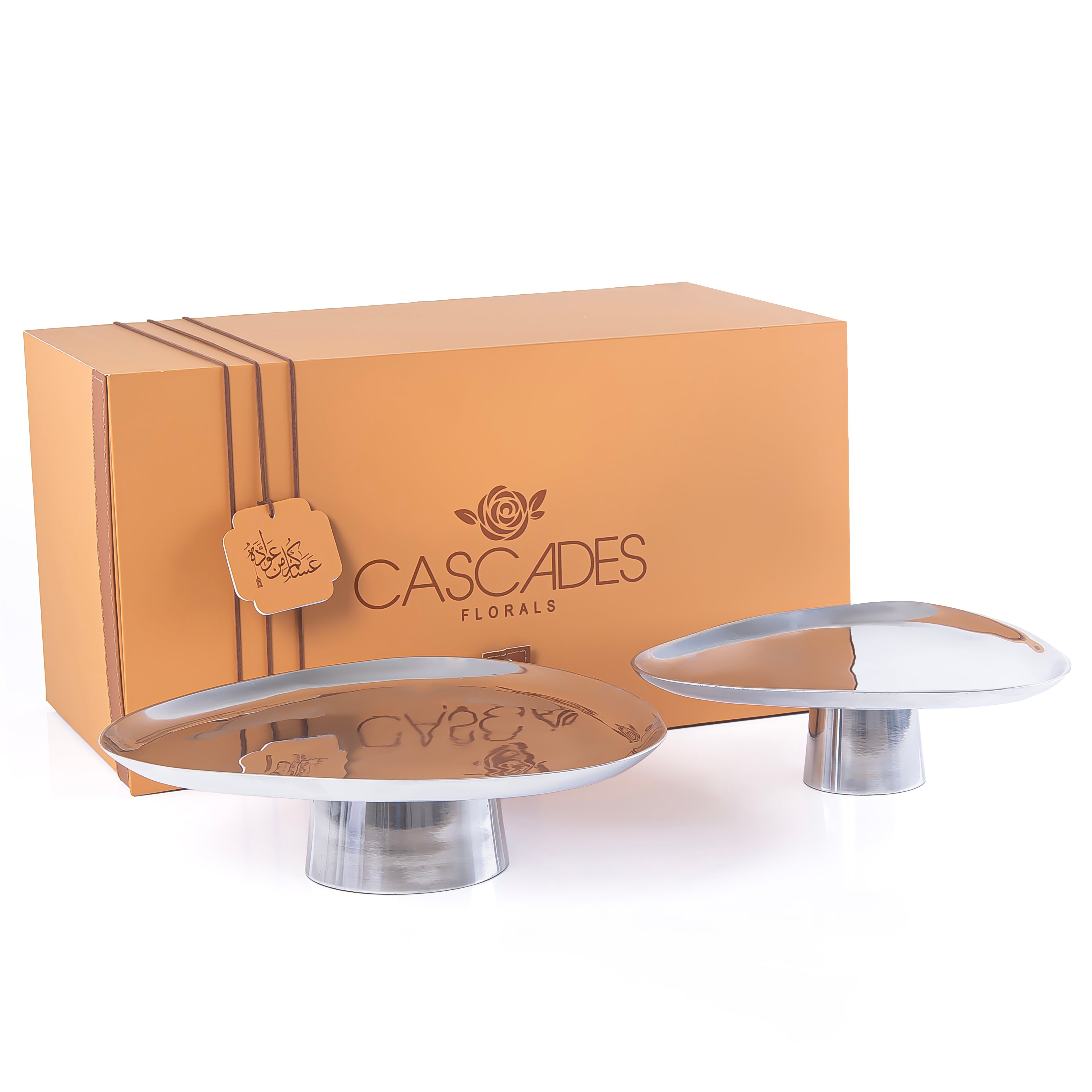إختر: طقم 2 ستاندات تقديم من المعدن مع بوكس - فضي