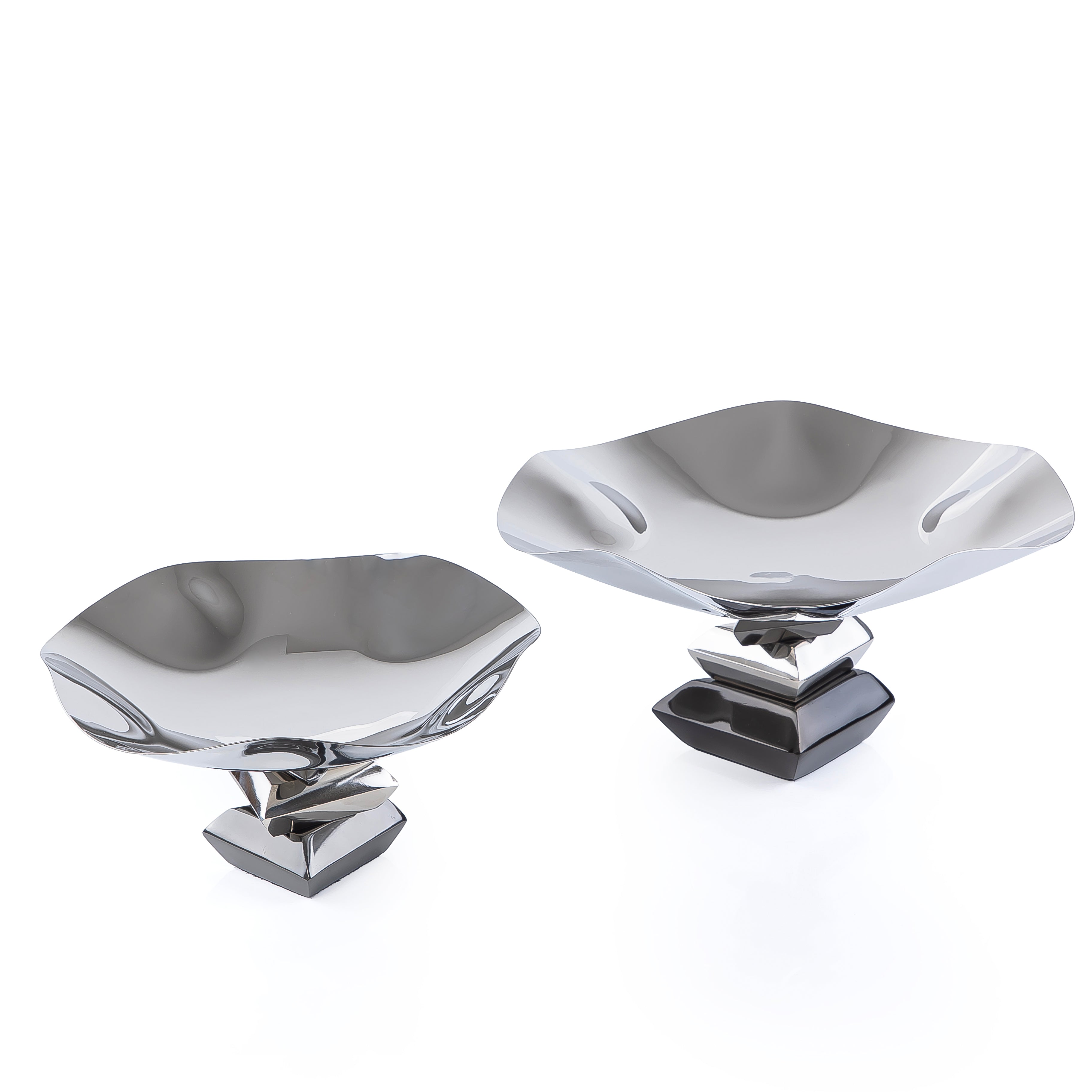 طقم 2 ستاند كيك معدني مع علبة هدايا - فضي وأسود