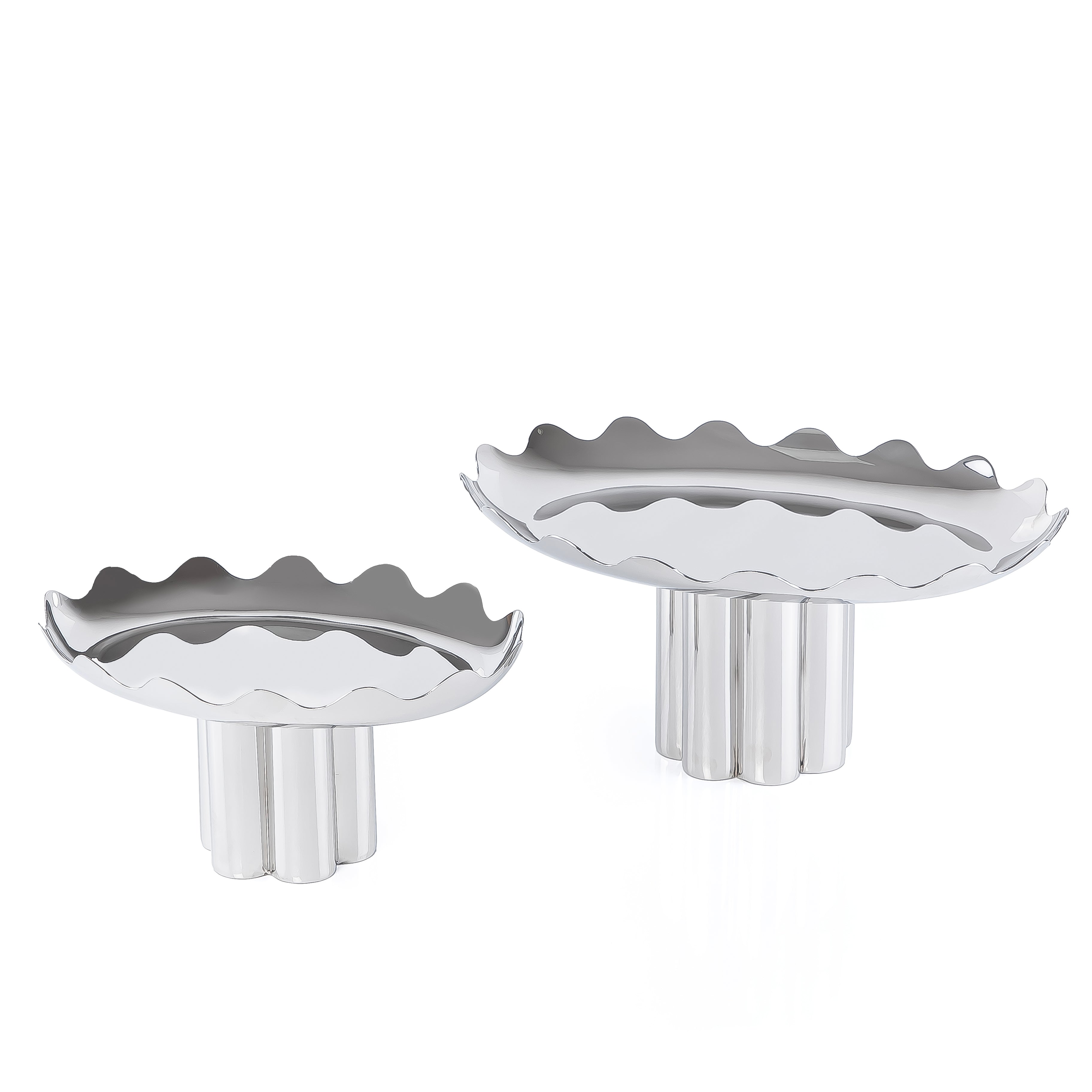 طقم مكون من 2 ستاند تقديم دائري معدن بحواف معرجة مع بوكس هدايا - فضي