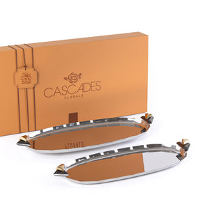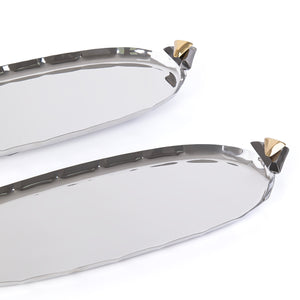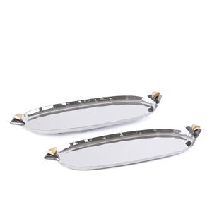 طقم مكون من 2 صينية تقديم معدن علي شكل بيضاوي مع بوكس هدايا - فضي & أسود