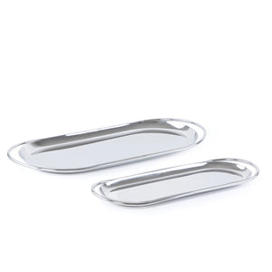 طقم مكون من 2 صينية تقديم معدن علي شكل بيضاوي مع بوكس هدايا - فضي