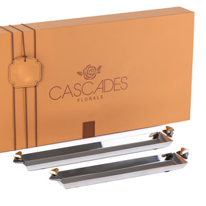 طقم مكون من 2 صينية معدن طويلة للتقديم مع بوكس هدايا - فضي & أسود