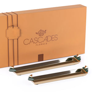 طقم مكون من 2 صينية معدن طويلة للتقديم مع بوكس هدايا - ذهبي & أخضر