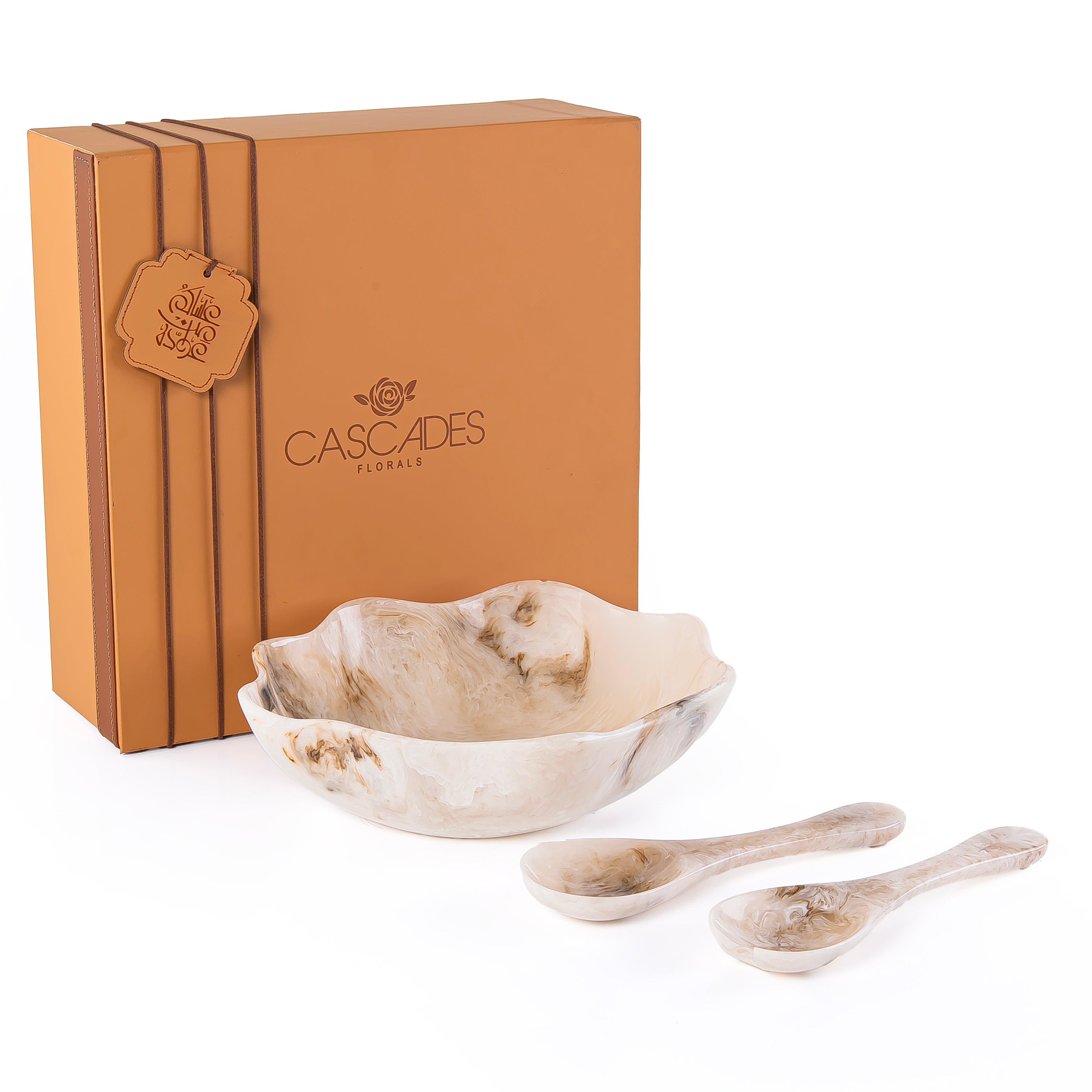 طقم من وعاء تقديم كبير من الراتنج مع ملعقتين مع بوكس هدايا – بيج