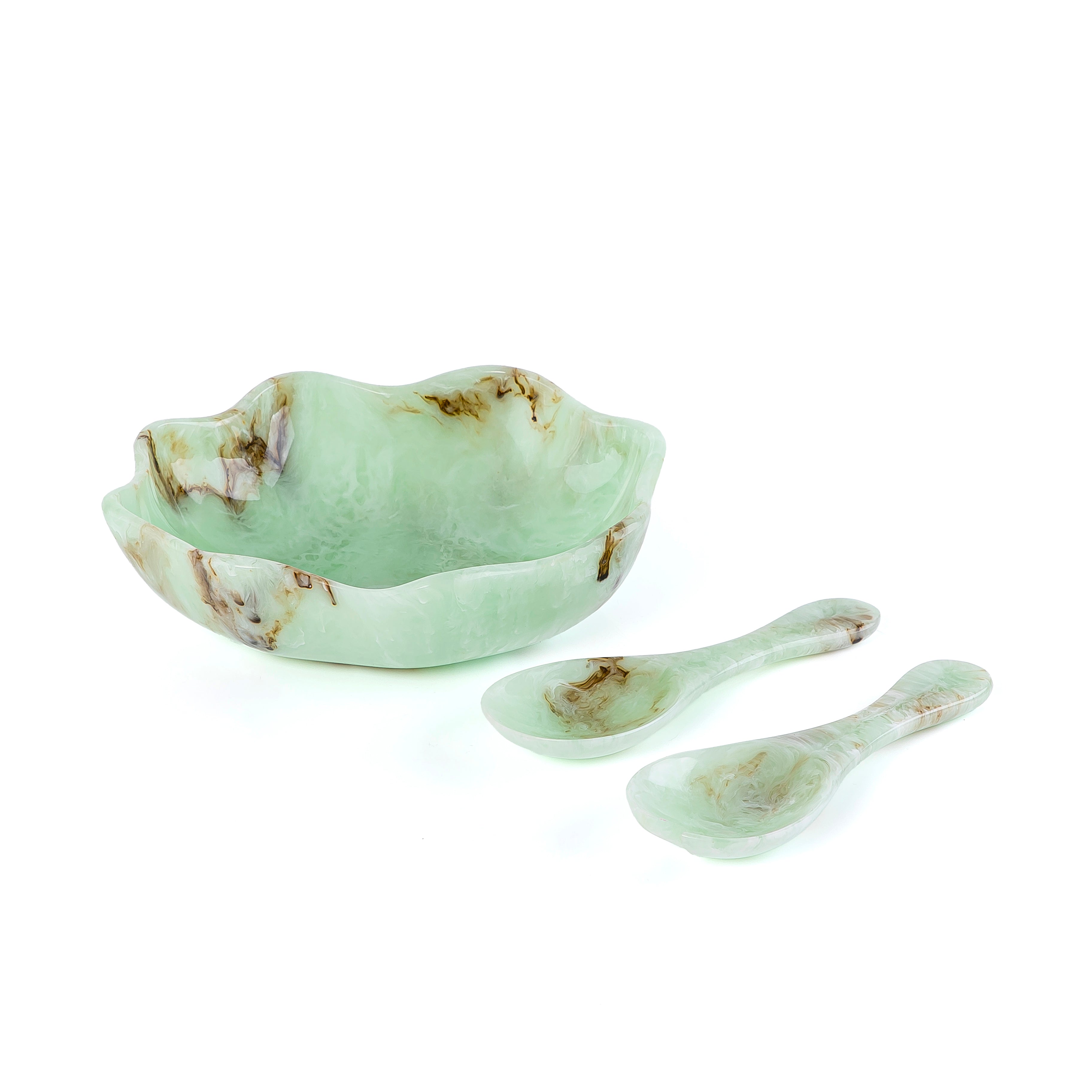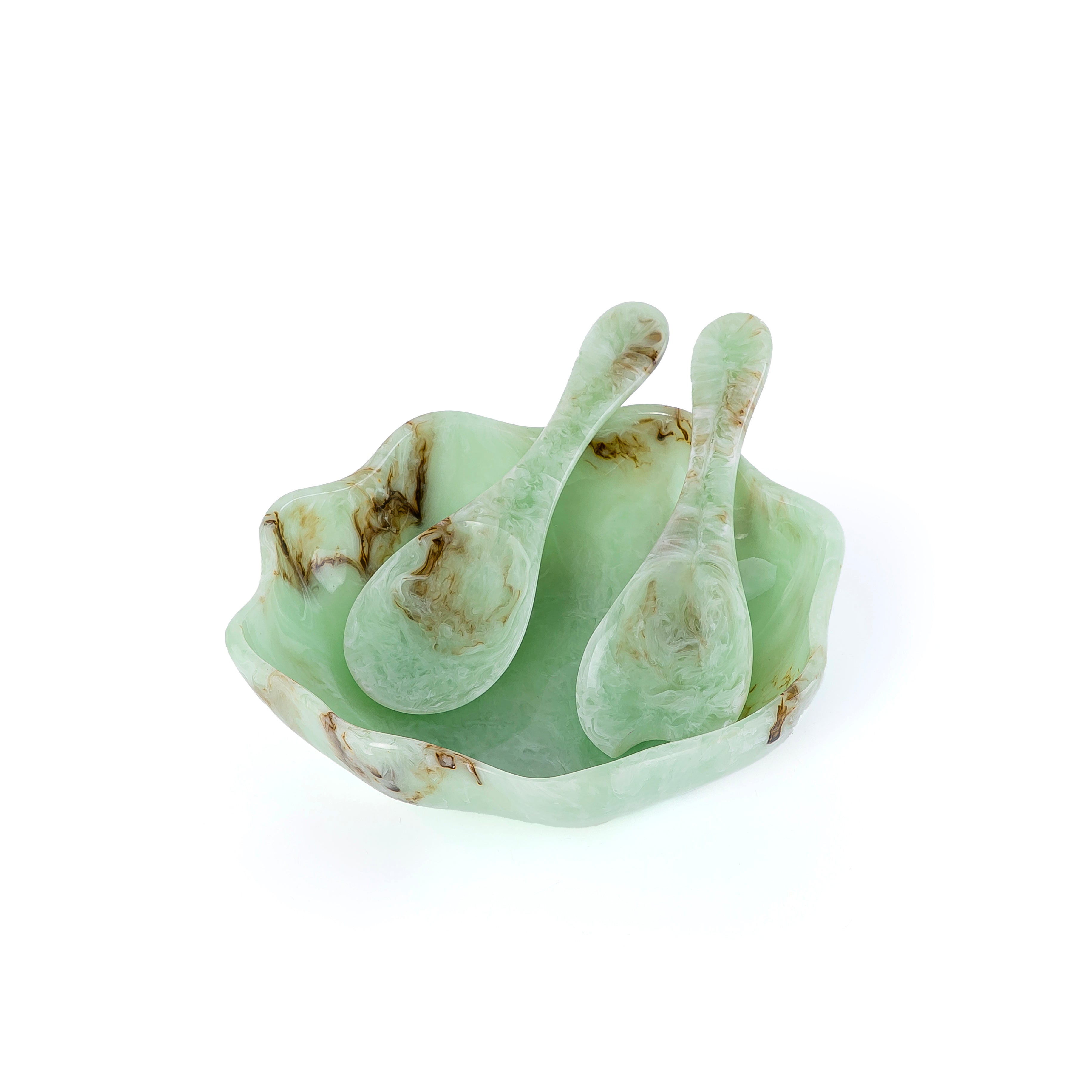 طقم من وعاء تقديم صغير من الراتنج مع ملعقتين مع بوكس هدايا – أخضر