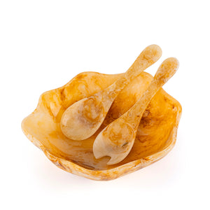 طقم من وعاء تقديم كبير من الراتنج مع ملعقتين مع بوكس هدايا – عنبر