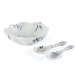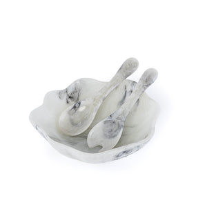 طقم من وعاء تقديم كبير من الراتنج مع ملعقتين مع بوكس هدايا – أبيض و أسود