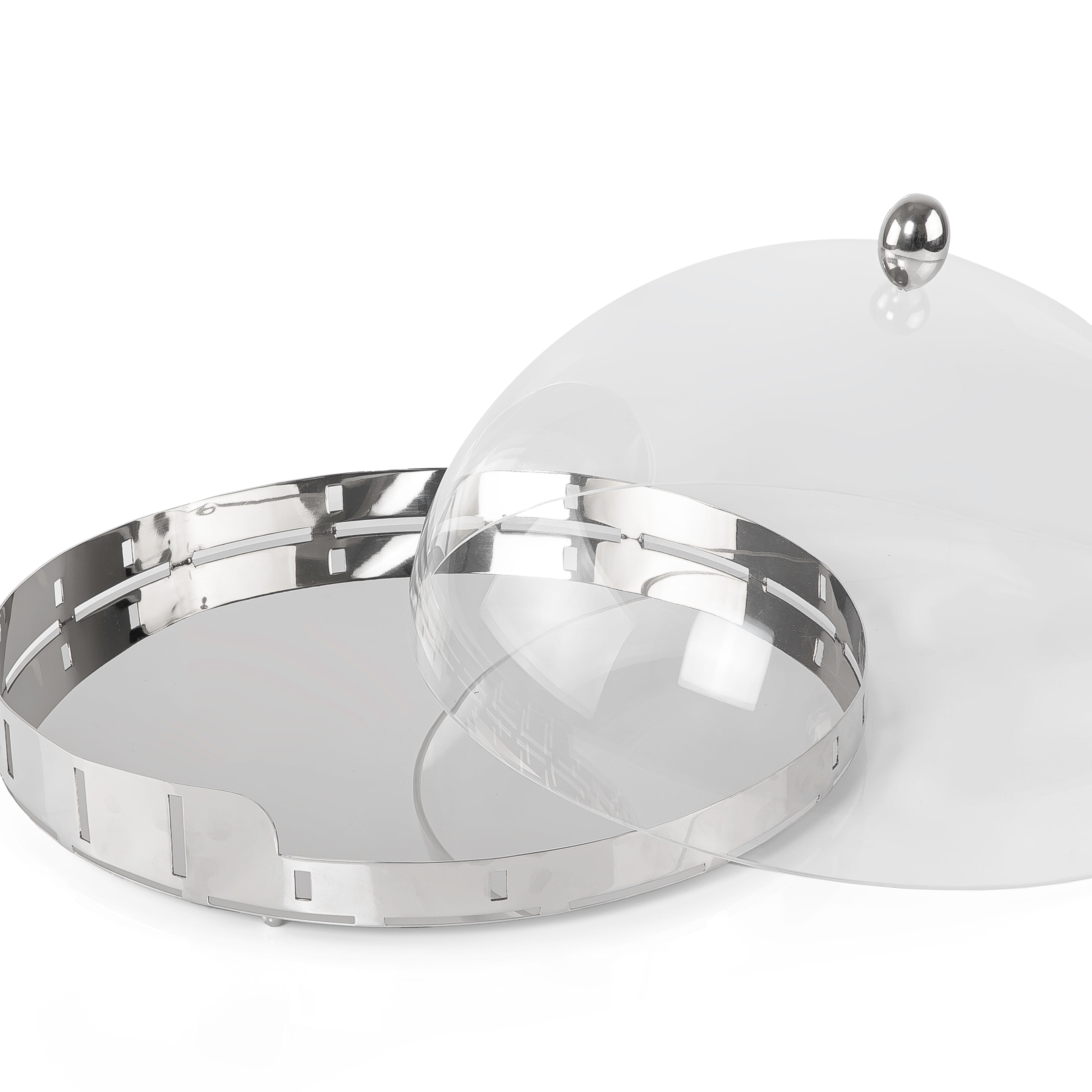 حامل الكيك مصنوع من الإستانلس ستيل مع غطاء من الأكريليك. تتميز القاعدة بتصميم أنيق وعصري.