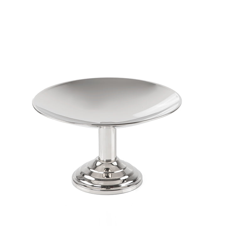 حامل كيك مصنوع من الإستانلس ستيل بقاعدة أسطوانية، يتميز بتصميم بسيط وأنيق.