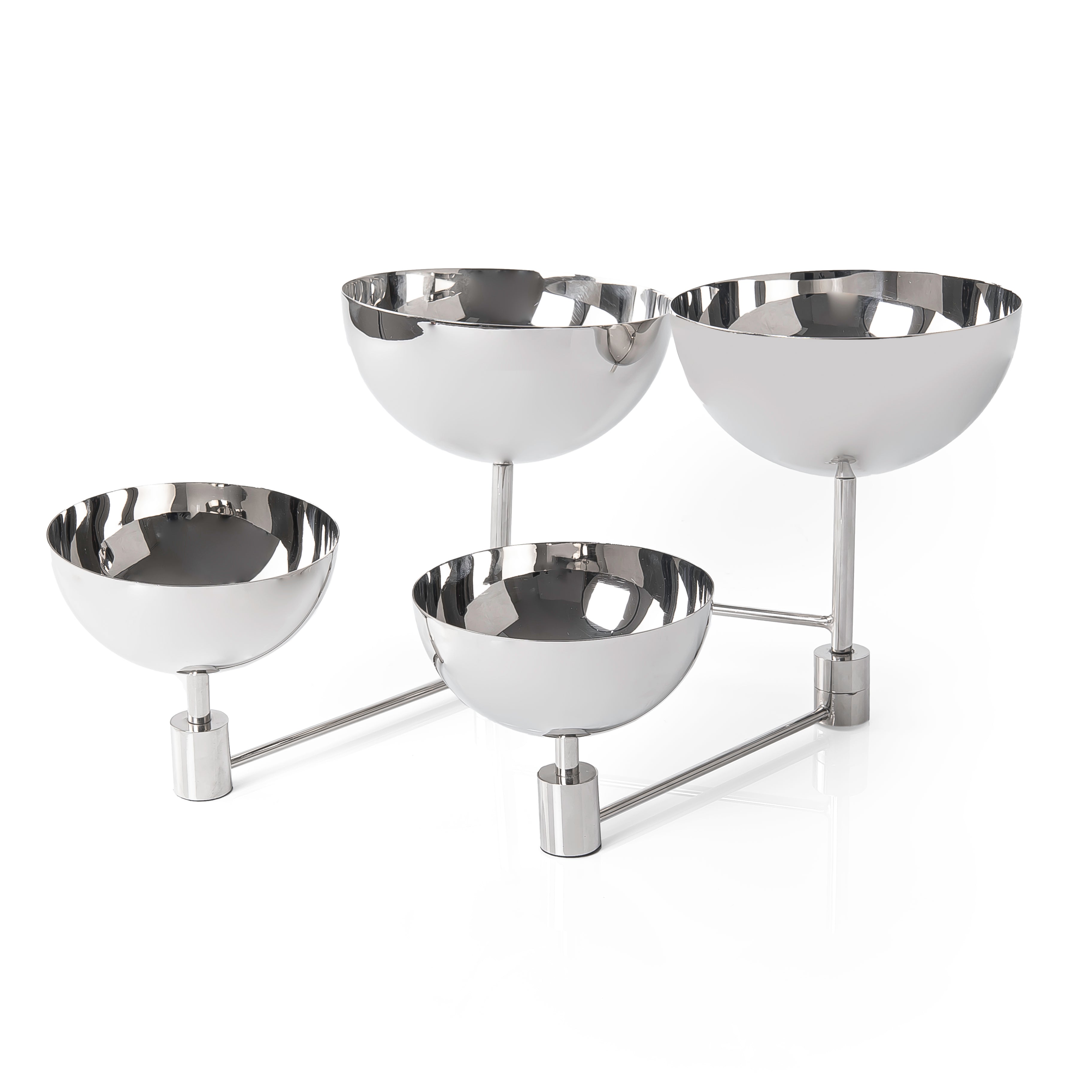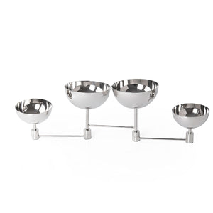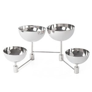 حامل تقديم مصنوع من الإستانلس ستيل مع 4 أوعية متصلة بقضيب معدني قوي، يتميز بتصميم عصري.
