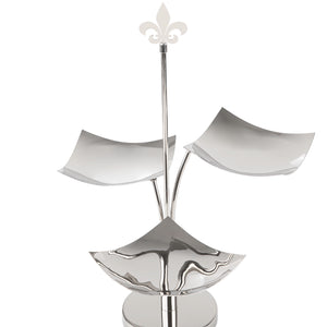 حامل تقديم مصنوع من الإستانلس ستيل بثلاثة أطباق مربعة، يتميز بتصميم أنيق ومبتكر مع قاعدة ثابتة.