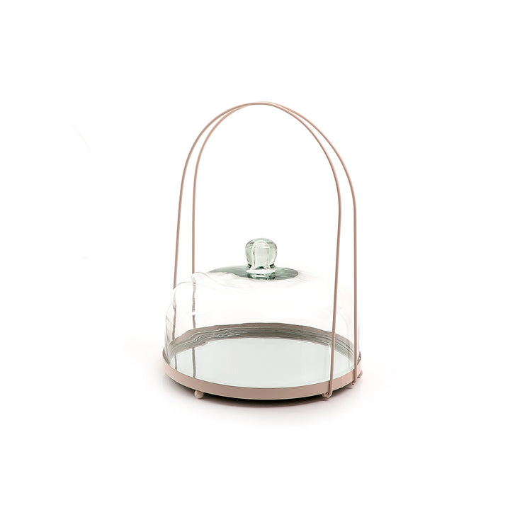 ستاند معدني دائري أصفر بمقبض وغطاء زجاجي